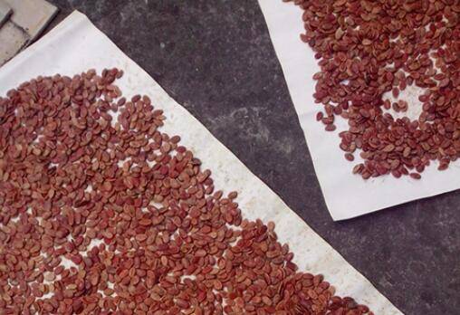 红瓜子平铺在垫纸上晾晒。