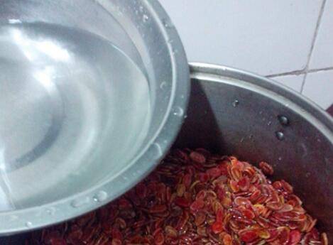 入水没过红瓜子表面一点。